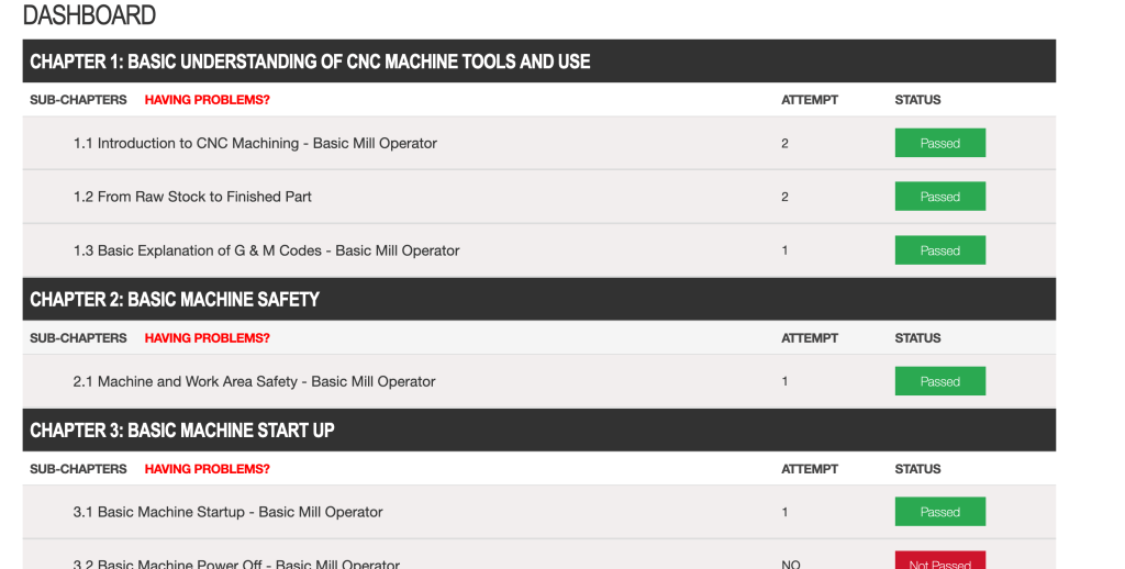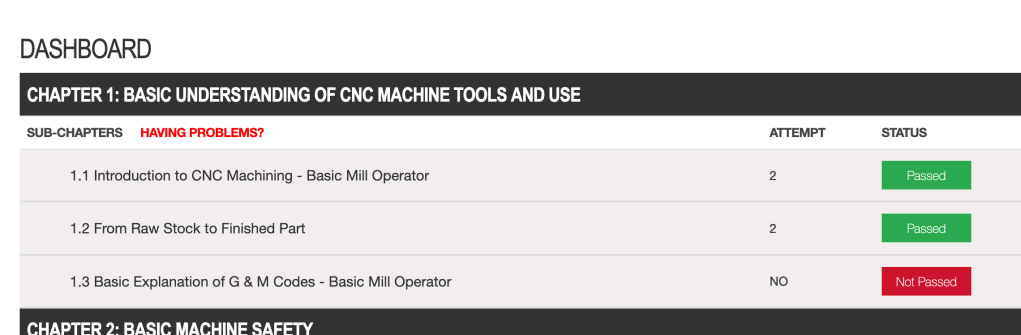 I have begun the CNC Mill training, and completed the first couple modules. Working on more today.